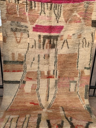 Parfois assez simple et épuré , on l'appellera Boujad de part sa région d'origine et sa technique de tissage , mais le plus souvent on retrouve des pièces très extravagantes, on peut même dire "déjantées" pour certaines qui réveillent l'oeil et l'esprit.